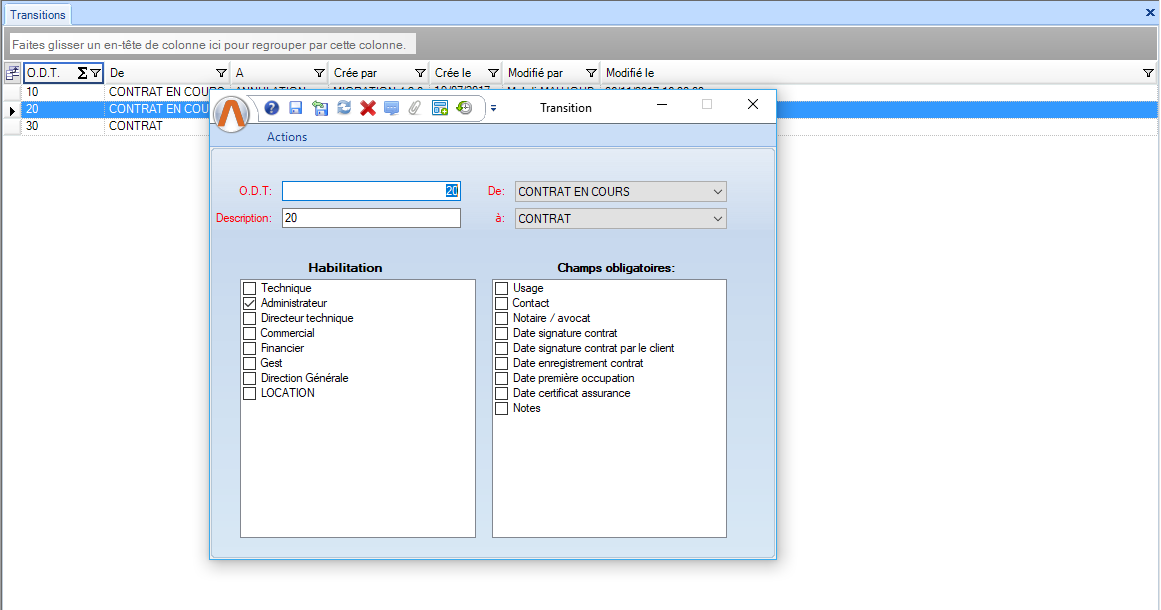 Remarque 1: Le statut de départ et le statut d'arrivé doivent être différents Remarque 2: On ne peut pas créer deux transitions avec la même source et la même destination |