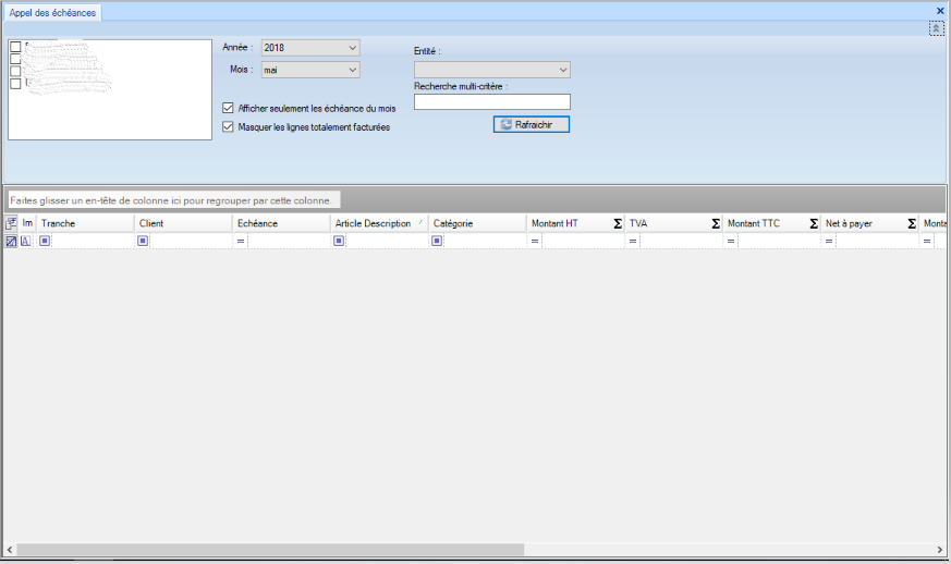 1- Si la case "Afficher seulement les échéances du mois" est cochée, le système n'affiche pas les échéances qui n'ont pas une date dans la période choisie.