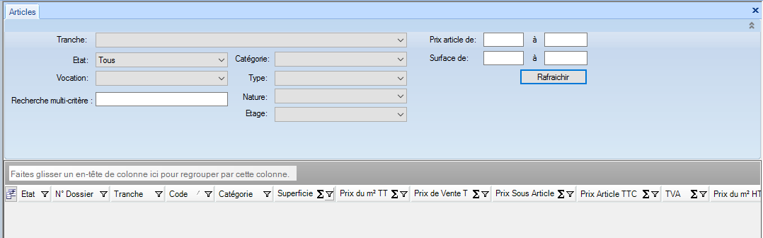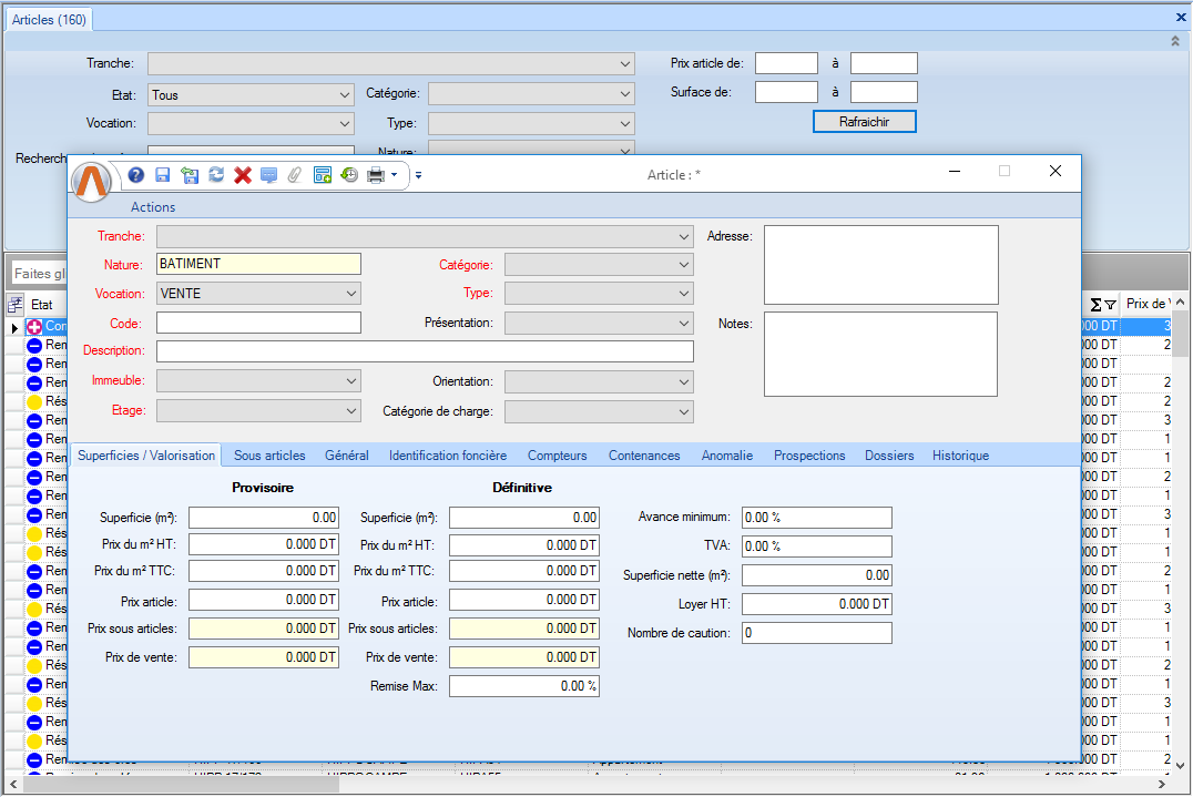 Prix article = Superficie définitive (m²) * Prix définitif de m² |