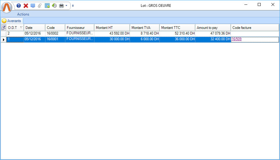 - Supprimer un avenants (la suppression n’est possible que pour l’avenants le plus récent et qui n’a pas une facture)