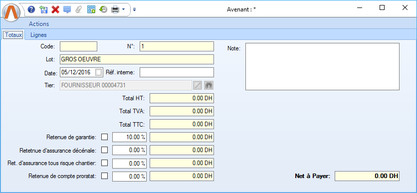 - Si la case est cochée, le système rend le montant «Retenue d’assurance tout risque chantier» saisissable manuellement.