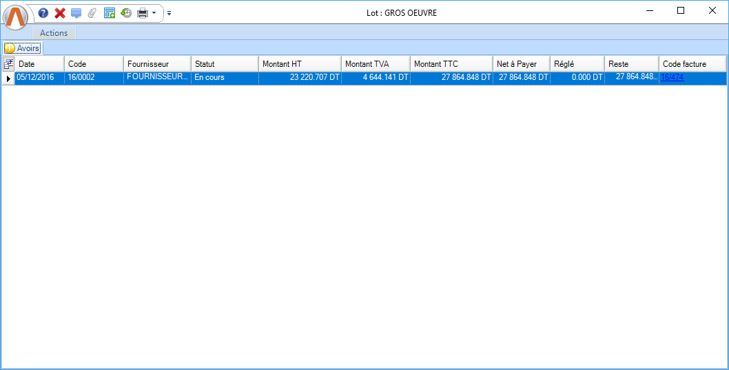 Remarque: Le système affiche la liste des avoirs qui sont générés à partir de la liste des décomptes |