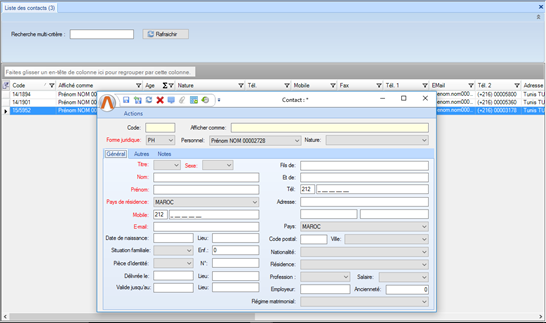Remarque : La combinaison des champs « Description » + « mobile » ou « Description » + « E-mail » doivent êtres uniques. |