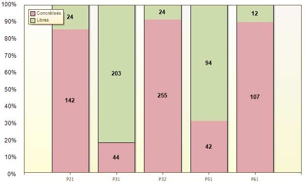 Concrétisés = Nombre d’articles dont le statut >= « Concrétisation/Promesse » non annulés et non désistés et la date concrétisation non nul d’une tranche.