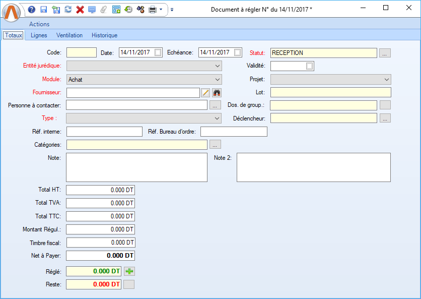 Montant de régulation : Il existe des cas ou le calcul de la facture fournisseur est incompréhensible, il faut utiliser ce montant pour coller le Net à payer à la valeur exacte |