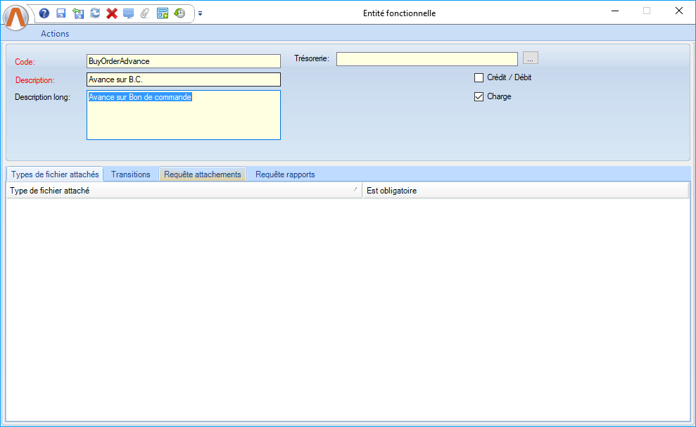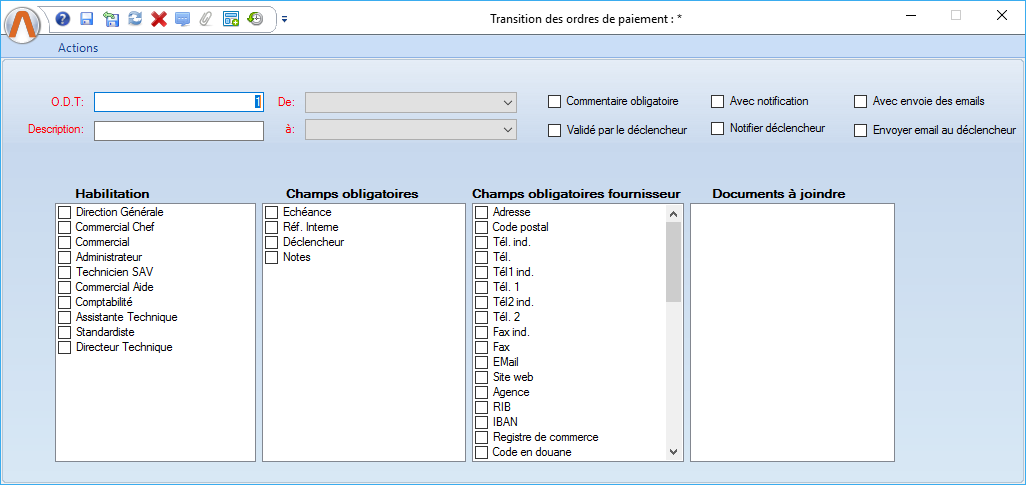 Remarque: La case à cocher "Est obligatoire" n'a un impact que dans le module vente, dans l'écran "Règlement" et "Dossier de vente" |