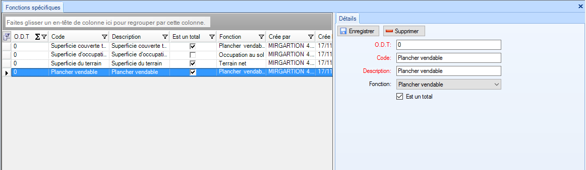 Remarque: Les fonctions spécifiques mentionnées ci dessus sert à référencer des champs dans l'écran " Étude de faisabilité " sous l'onglet " Terrain " pour affecter les superficies automatiquement dans le bilan. Plancher vendable = Terrain --> Plancher vendable Plancher couvert = Terrain --> Plancher couvert Terrain net = Terrain --> Superficie Terrain net Terrain brut = Terrain --> Superficie Terrain (m²) Occupation au sol = Terrain --> Emprise au sol Bâtiments |