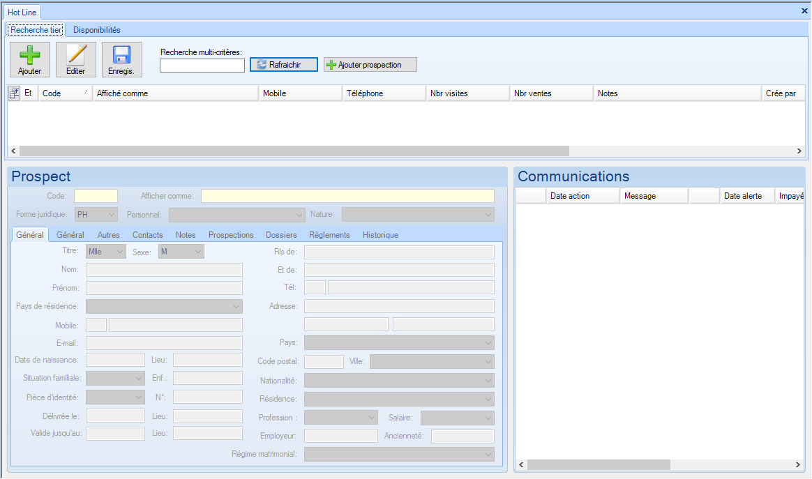 Ajouter une prospection pour un prospect sélectionné.de la liste de recherche de tiers |