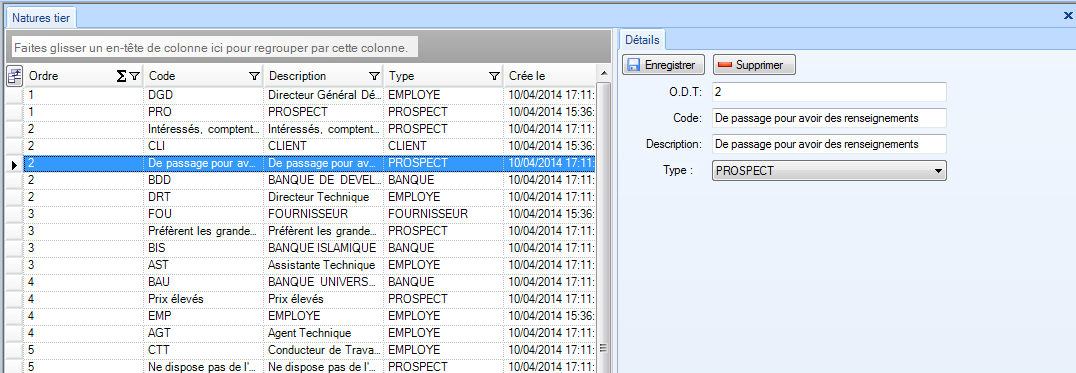 Liste déroulante de tiers |