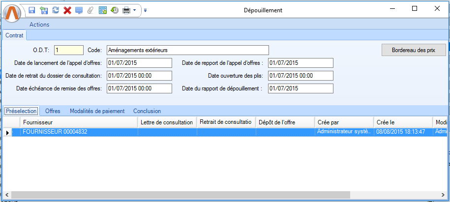 - Copie la liste des fournisseurs présélectionnés dans le dépouillement précédent et qui n’ont pas été écartés.