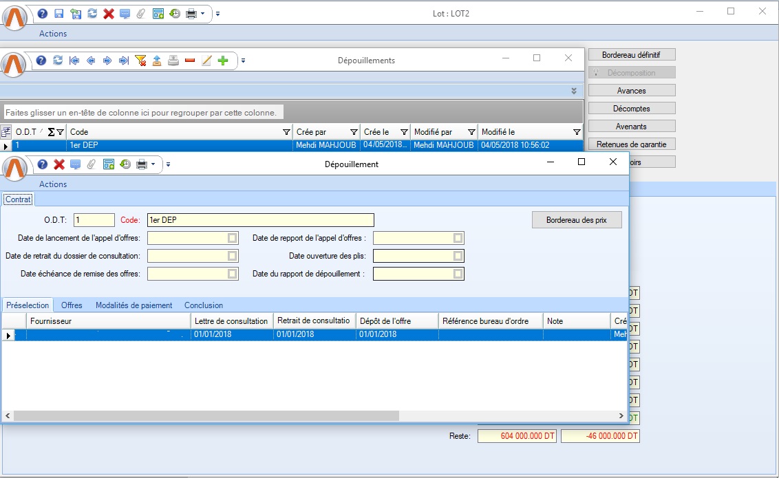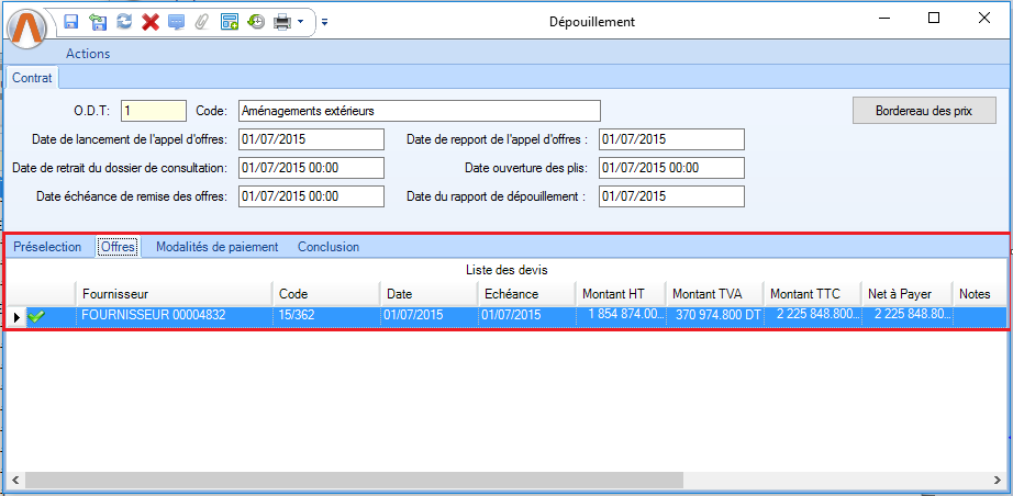 - La date dépôt de l'offre...