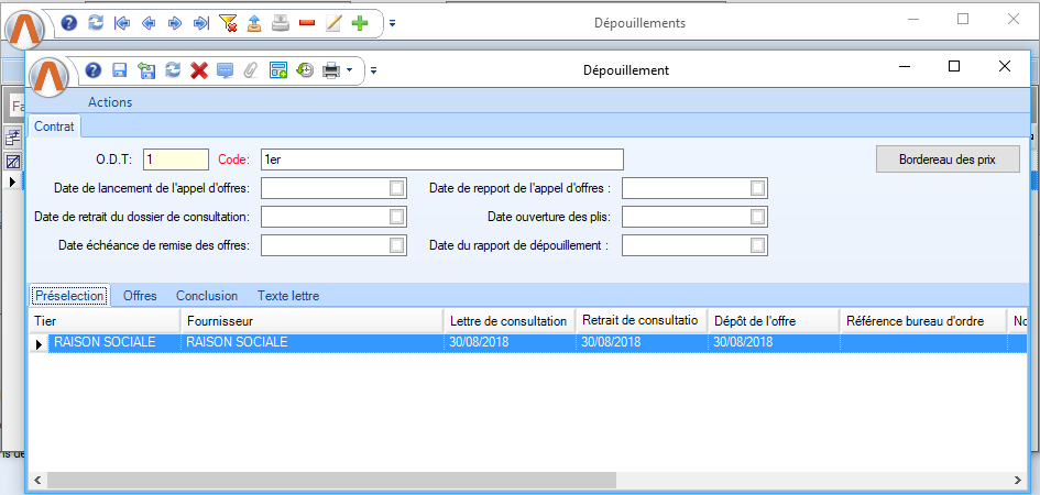 La liste visualise les données des fournisseurs qui ont répondu à la consultation dans les délais en indiquant: