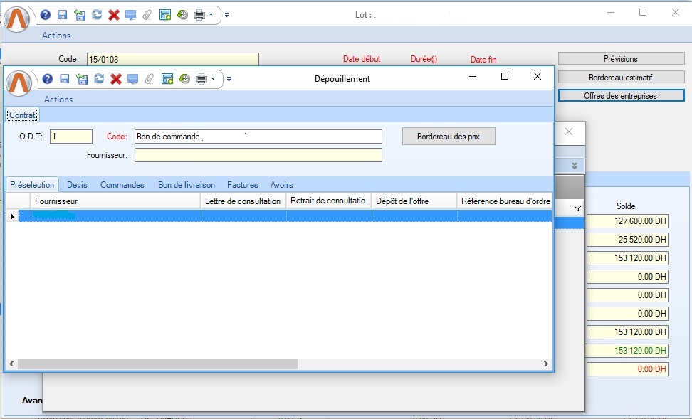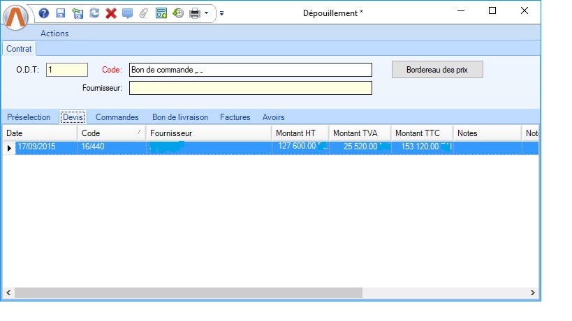 En lecture seule, Dans ce champ, le système affiche le fournisseur sélectionné |