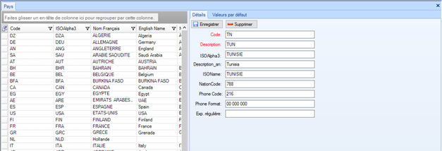 (*) Remarque : les valeurs par défaut seront reprises automatiquement lors de la création des fiche tiers