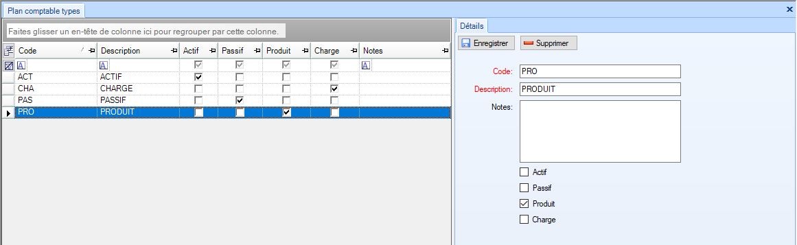 Case à cocher à choix unique pour définir le type du plan comptable. |