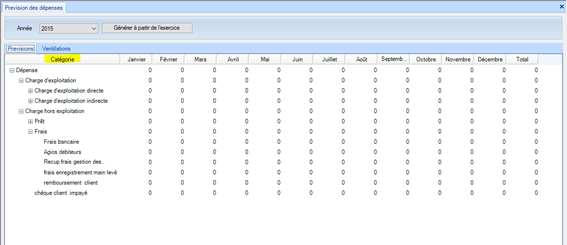 Le système affiche la hiérarchie de la catégorie des dépenses |