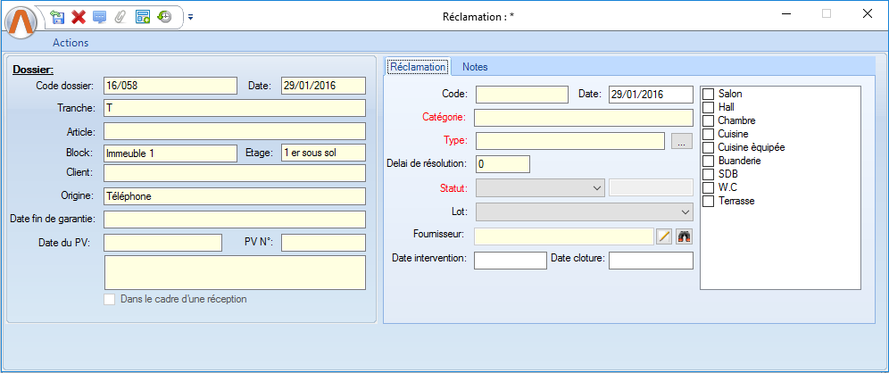 Liste déroulante des lots chargée en fonction de la catégorie de réclamation |
