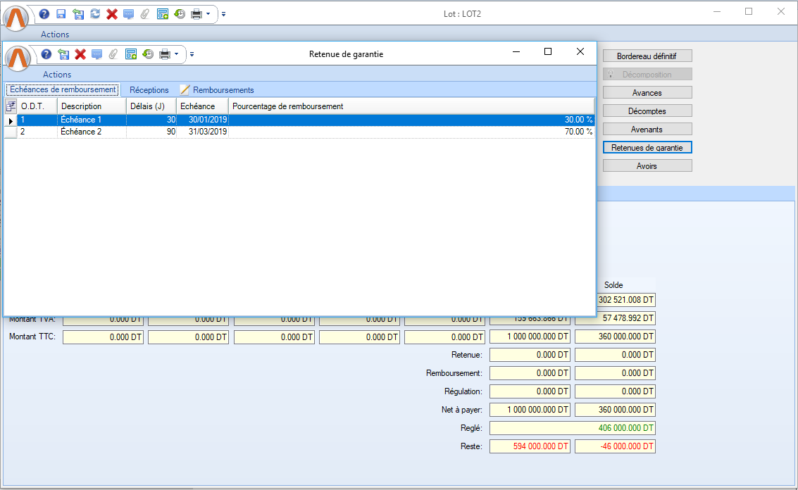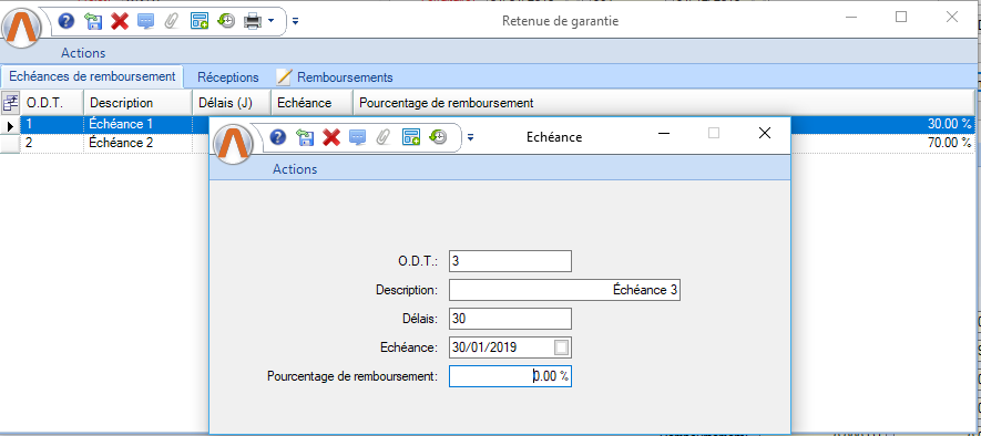 Le bouton « retenues de garanties » permet aux utilisateurs de personnaliser le remboursement des garanties on donnant la main sur la gestion des :
