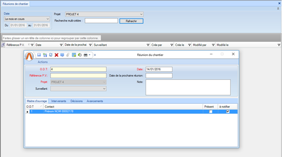 La liste visualise les maîtres d’ouvrage en indiquant :
