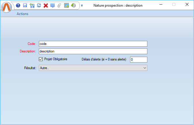 Pour une nature de prospection, si la case « Projet obligatoire » est cochée, le choix d’un projet dans la fiche prospection devient obligatoire sinon, il devient optionnel. |