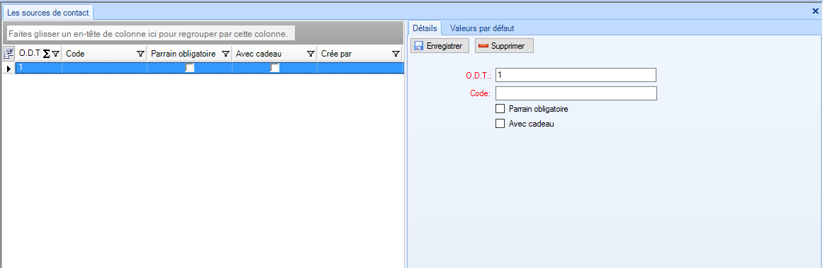 Liste déroulante des sources de contacts. A la création d’une « Prospections », la source de contact choisi sera affectée par défaut dans la fiche. |
