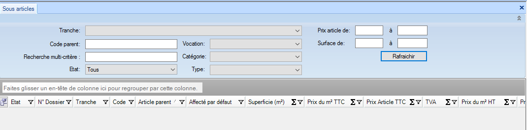 Superficie Sous Articles (m²) |