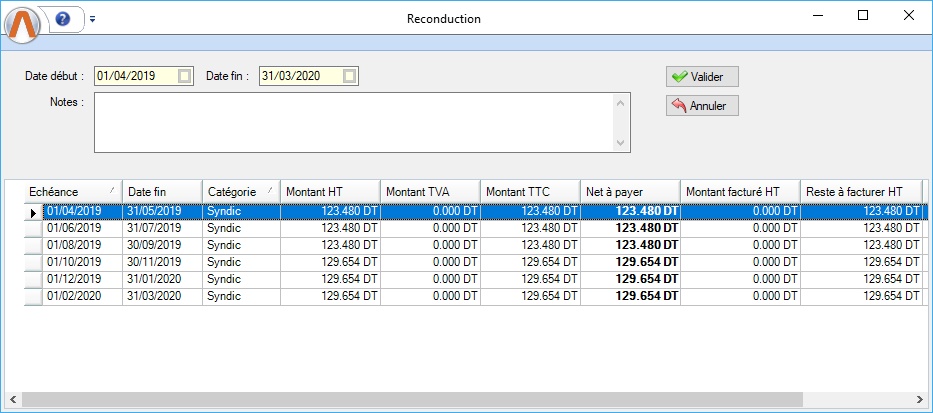 Le système génère l'échéancier de syndic selon le paramétrage effectué |