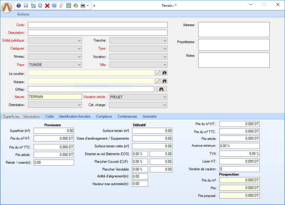 Prix article provisoire = Superficie provisoire (m²) * prix provisoire de m² |
