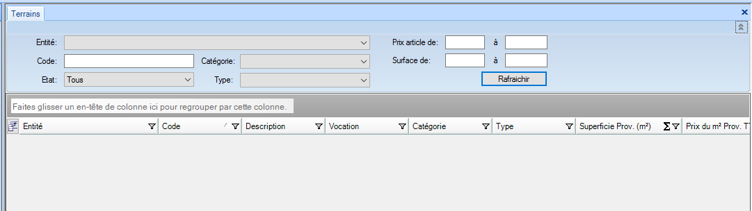 Liste déroulante de catégories qui ont la nature "Terrain" |