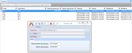 Remarque : Cette fiche permet aux utilisateurs du module projet d’éditer seulement les dates de lancement et de fin des travaux. |