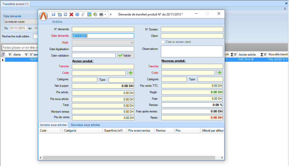 - Affecte le nouveau article et leurs sous articles dans le dossier de vente
