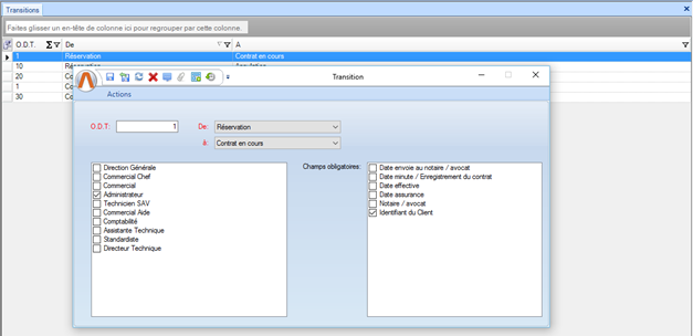 Remarque 1: Le statut de départ et le statut d'arrivé doivent être différents Remarque 2: On ne peut pas créer deux transitions avec la même source et la même destination |