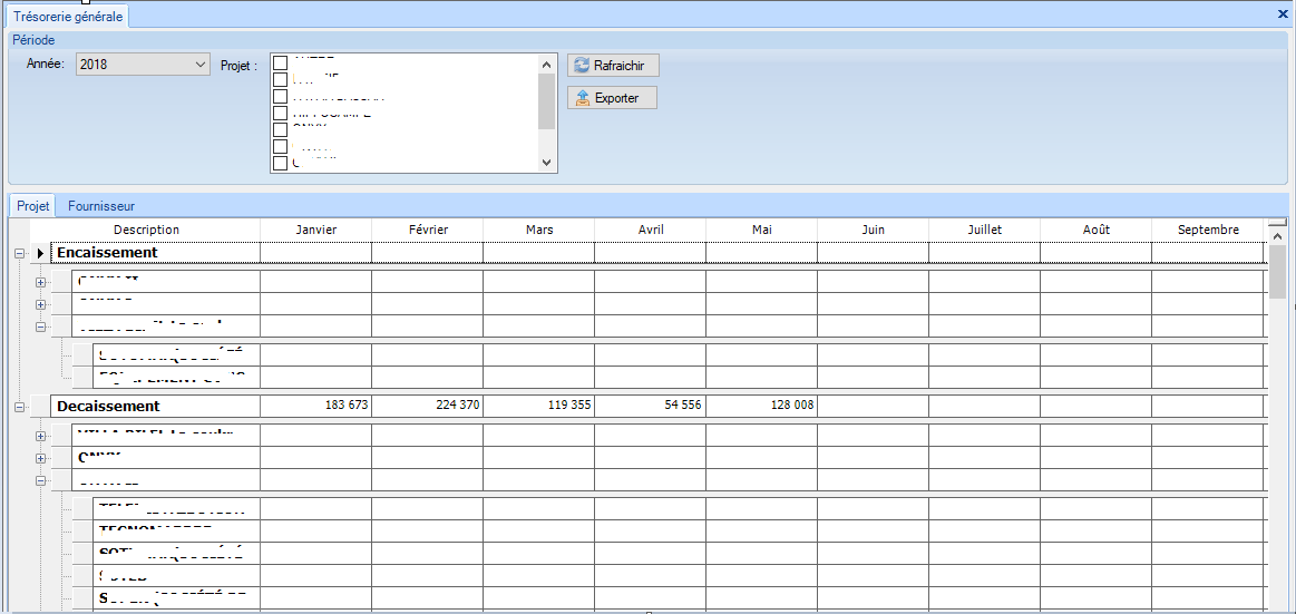 - Encaissement --> Projets --> Fournisseurs